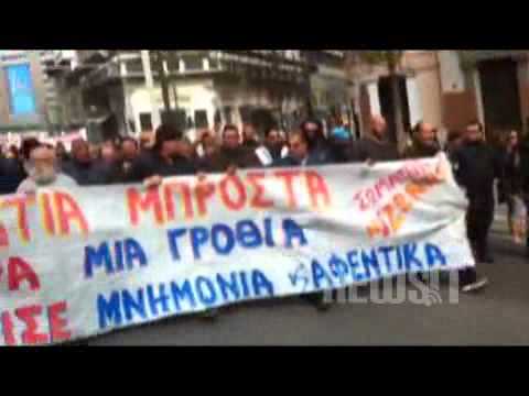 δημοσιεύουμε την σημερινή διαδήλωση των εργαζομένων στο ναυπηγείο Ελευσίνας και Σύρου, που δήθεν για τον υπουργό οικονομικών είναι επέκταση του ναυπηγείου Σκαραμαγκά. Οι άνθρωποι είναι απλήρωτοι για σχεδόν πάνω από ένα χρόνο και ο υπουργός υποστηρίζει ότι τα υποβρύχια τους δίνουν δουλειά. Το ψέμα μέχρι εδώ ήταν, η ώρα της αλήθειας έφτασε, οι εκλογές είναι η μεγάλη ευκαιρία να δείξουμε την απέχθεια μας στους κλέφτες και στους ψεύτες.Οι 2.000 εργαζόμενοι που βρίσκονταν στο Υπουργείο Οικονομικών και στο Σύνταγμα για να μη δυναμιτίσουν το κλίμα υπάκουσαν στις υποδείξεις της αστυνομίας προκειμένου αντιπροσωπεία τους να συναντηθεί με την Υπουργό Ανάπτυξης.