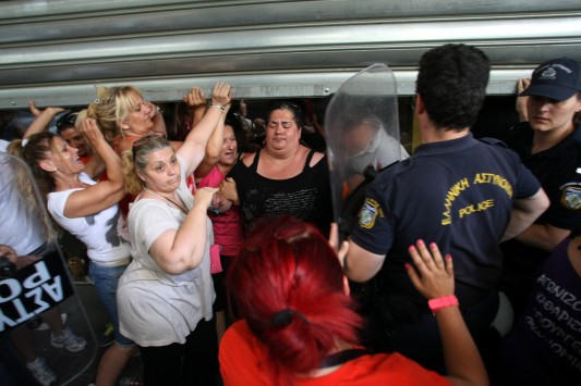 οδού Νίκης. Οι καθαρίστριες επιχείρησαν να σταματήσουν το κατέβασμα των