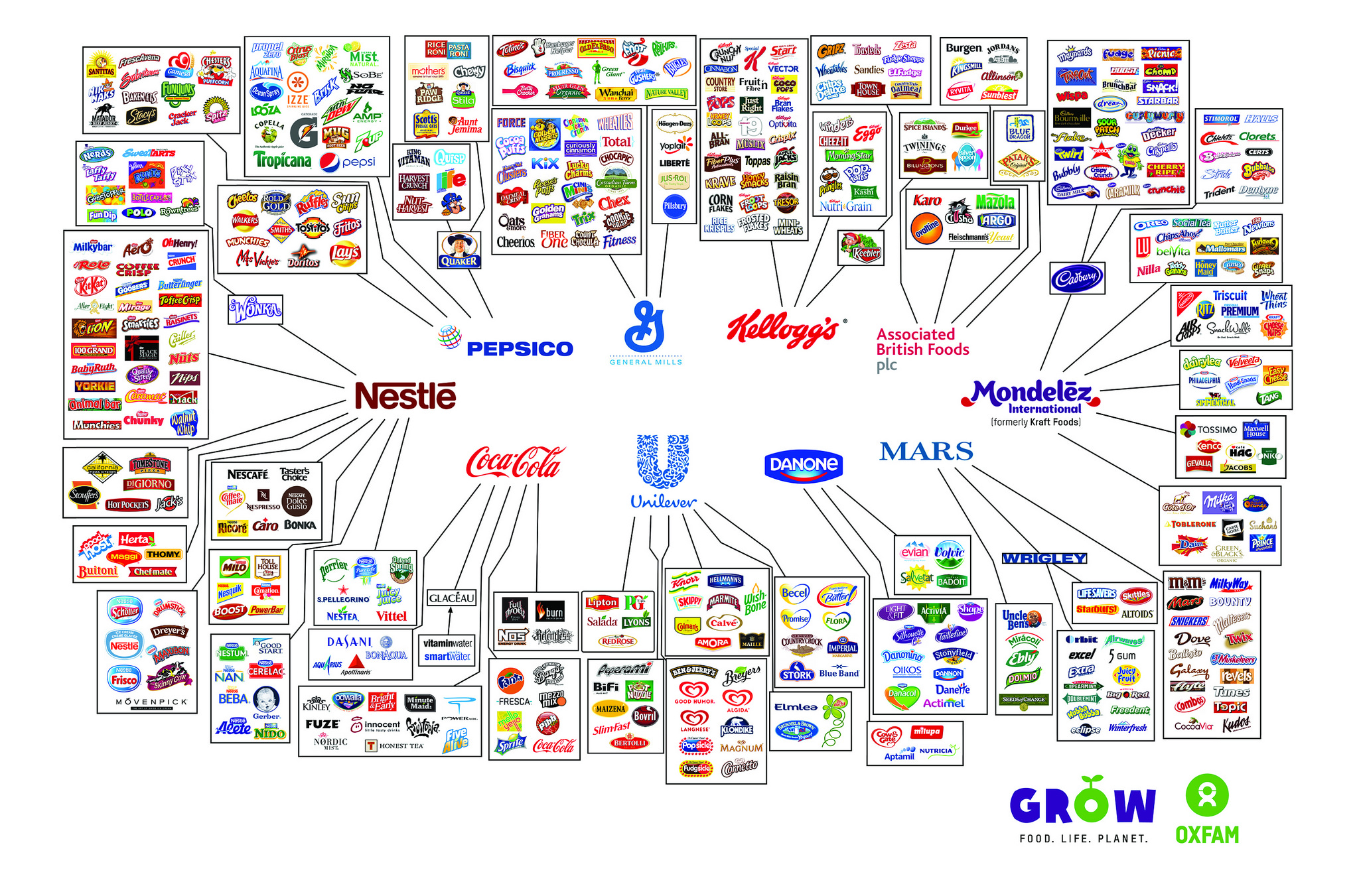 Σε μια προσπάθεια να ωθήσει τις εν λόγω εταιρείες να προβούν σε θετικές αλλαγές και προκειμένου να συνειδητοποιήσουν όλοι οι πελάτες ποιος ελέγχει στην πραγματικότητα τα είδη που αγοράζουν η εταιρεία Oxfam δημιούργησε μια γραφική αναπαράσταση που απεικονίζει πόσο συνδέονται οι διάφορες μάρκες καταναλωτικών προϊόντων.