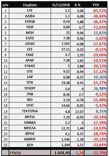 «Μεγάλες επιτυχίες το 2018: Το χρηματιστήριο έχασε 23,56% κ οι τράπεζες εξαϋλώθηκαν με -49,82%. Μοναδική περίπτωση στην παγκόσμια οικονομική
